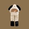 Niedlicher Welpen-Cartoon Plüschhut Damen Herbst und Winter verdickt warmer Plüschhut Handschuhe Schal Drei-in-Eins Kopfbedeckung