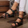 Mode Neuer Stil Mode Damen Keilabsatz Sandalen Sommer Dicke Sohle Rutschfest Strandschuhe Frau Nieten Dekor Klobige Plateau Sandalen
