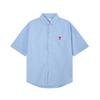 AMI Klassisches Frühling- und Herbst-Baumwoll-Freizeit-T-Shirt mit rotem Herz-Stickerei und kurzen Ärmeln in Unifarben auf der Brust