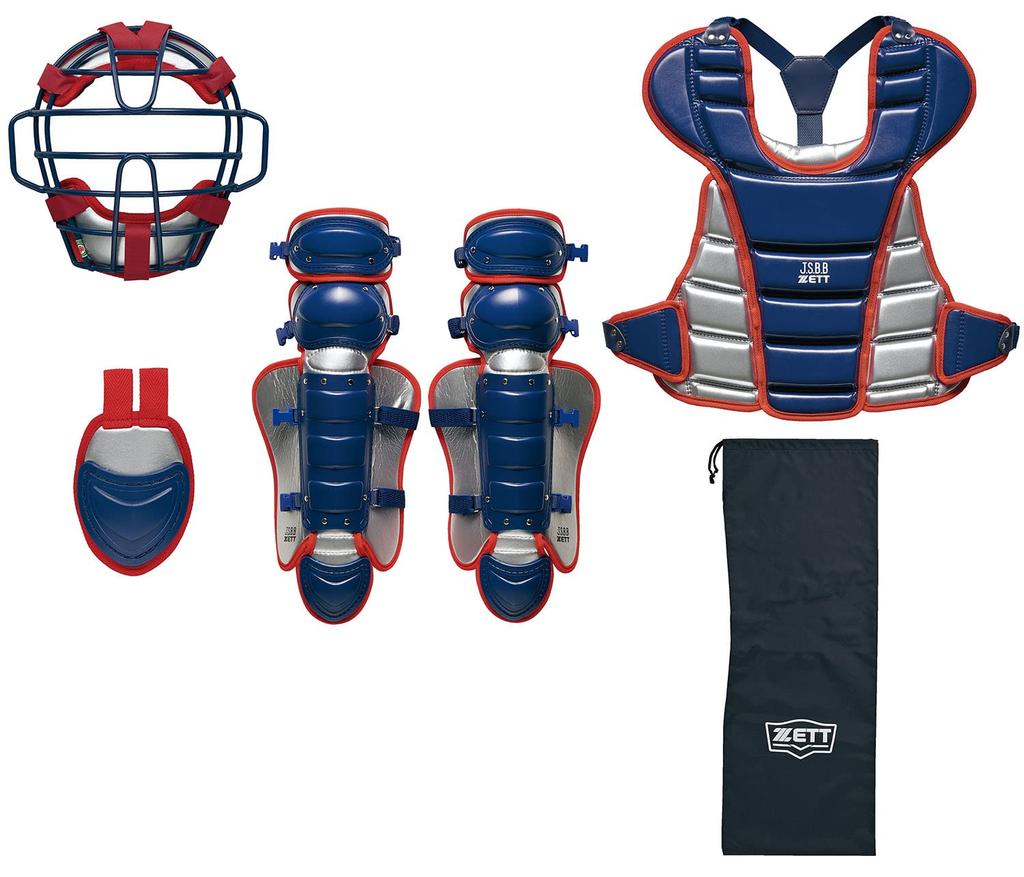 ZETT Baseball-Schutzausrüstungsset für Softball Limited für und Marine x Silber von Swallow Sports Catcher's (4-teiliges Set) Baseball, Ausgabe, Jungen,