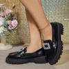 Modemarke Strassschnalle Schuhe Damen Neu Dickbesohlte Ballerinas Lackleder Oxfords Damen Lässige Slipper Loafers Lolita Schuhe
