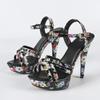 Fashion Liyke Modedesign Print Leder Schmalband Damen Plateau Sandale Sexy Peep Toe Super High Heels Bankett Party Schuhe Größe 43