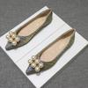 Mode Große Perlen Dekoration Ballerinas Frau spitze Zehen plissierte Seide Hochzeitsschuhe Slipper Damen elegant Arbeitsschuhe Größe 42