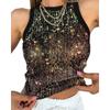Leopard Print Sequin Vest Women's Leopard Print Vest Sexy Waist Hollow-out Sleeveless Tops 51460