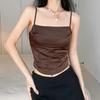 Niche Style Retro Design Lace-up Irregular Spaghetti-Strap Vest Women's Summer and Summer Waist-Tight Slim Looking Sexy Graceful Satin Tops