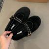 Mode Mode Runde Zehenpartie Damen Mary Janes Ballerinas Pelzschuhe Damen Schnallenriemen Schuhe Warm Damen Ballerinas Flache Schuhe