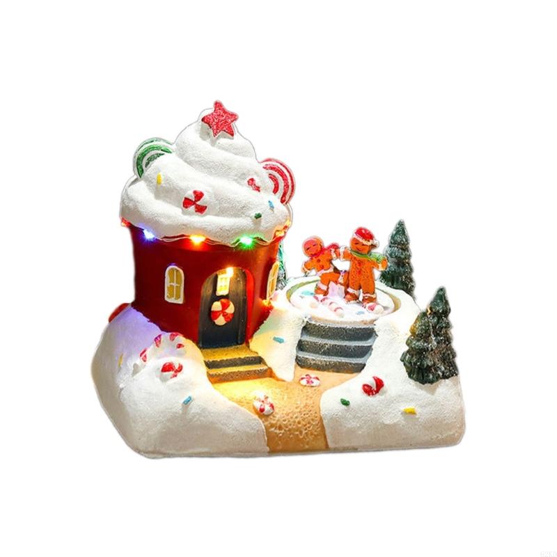 62KD Holiday Resin Figurines with Music and LED Light Christmas Village Desktop Gift