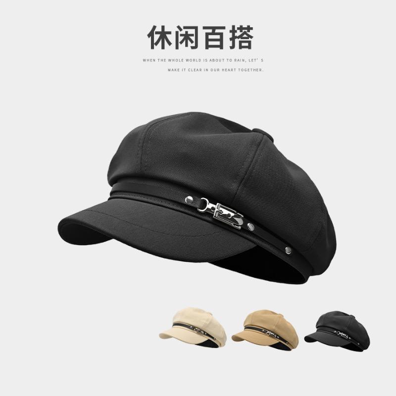 Herbst und Winter achteckige Mütze Damen Baskenmütze hochwertige Kappe Malermütze schwarz Schiebermütze Herren