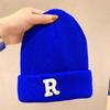 New autumn and winter R knitted wool hat casual versatile men's and women's thermal hats niche street trendy brand