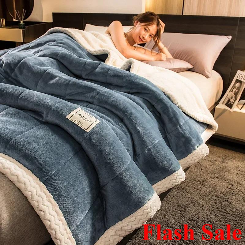 2025 Coral Fleece Autumn Winter Warm Blankets For Bed 3 Layers Thicken Flannel Blanket Quilt Soft Comfortable Warmth Quilts