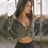 2025 Short Autumn and Winter Sports Sweatshirt Women's Distressed Burr Crop Top Hooded Outwear Fashion Style Solid Color Long-Sleeved Top