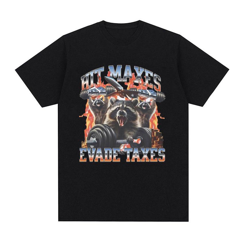 Hit Maxes Steuern Hinterziehen Meme T-Shirt für Männer Frauen Lustige Waschbär Grafik T-Shirts Herrenmode Retro Übergroßes T-Shirt Streetwear