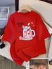 Leckeres Erdbeergetränk Print Damen T-Shirt Sommer Atmungsaktives T-Shirt Baumwolle Streetwear Lässig Sportlich Cool Kurzarm