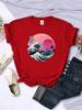 Ukiyo E Stil Große Welle Damen Kurzarm Atmungsaktive Freizeit T-Shirts Mode Sommer Trend Top Weich Allround Damen T-Shirt Kleidung