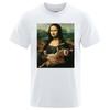 Lustiges Mona Lisa und Katze bedrucktes T-Shirt für Herren Sommer Baumwoll-T-Shirt Locker Atmungsaktive Kleidung O-Ausschnitt Mode Kurze T-Shirts 80276