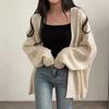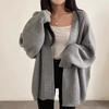 Autumn and winter simple solid color lazy loose casual versatile medium and long sweater jacket women's knitted cardigan