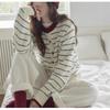 Contrasting color crew neck striped knitted cardigan autumn and winter new college style age-reducing casual soft waxy sweater women's coat