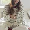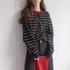 Herbst- und Winter-Kontraststreifen-Pullover Damen lockeres und lässiges Oberteil Retro Rundhals Strick-Cardigan-Jacke