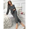 Damen Flauschiger Pyjama Set - Lässiger Rundhalsausschnitt Langarm Besticktes Buchstabenmuster - Teddy Flauschiger Lässiger Pyjama für Winterwärme, Oberteil und Hose