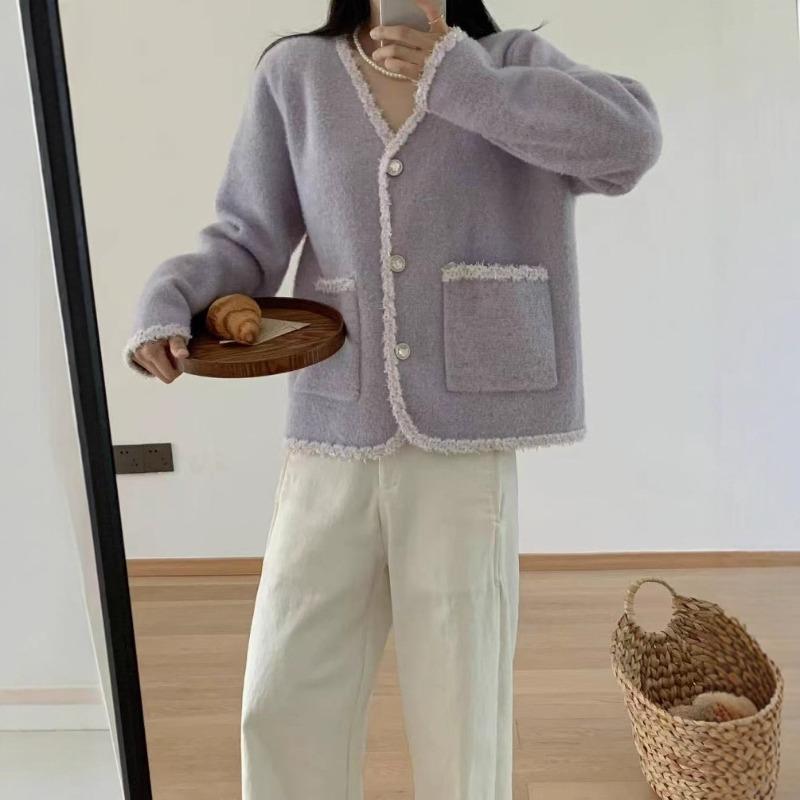 Imitation mink velvet knitted cardigan autumn and winter new V-neck temperament loose sweater jacket women