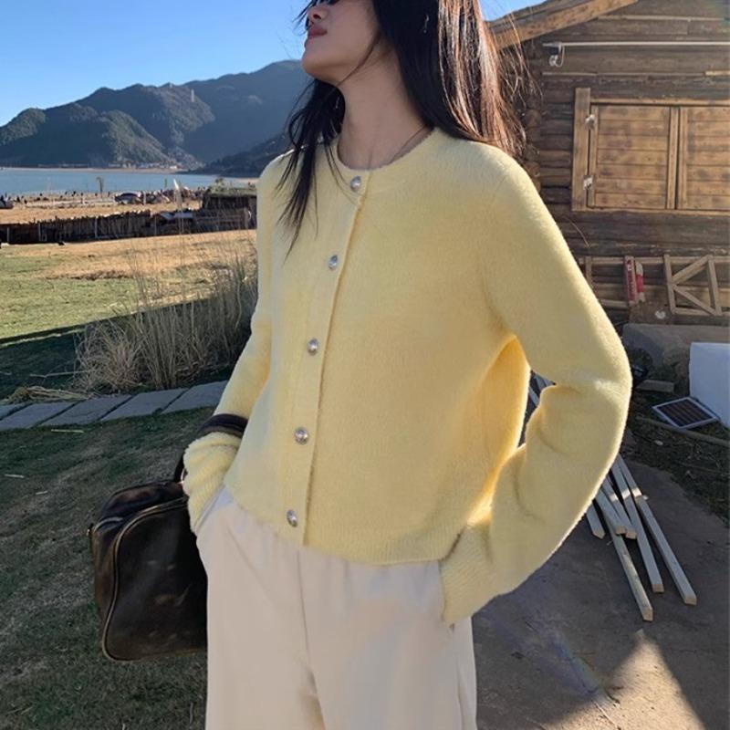 Gestrickte Strickjacke sanftes Imitat Nerzsamt Herbst und Winter neu locker weich wachsig Lazy-Wind Pulloverjacke Damen