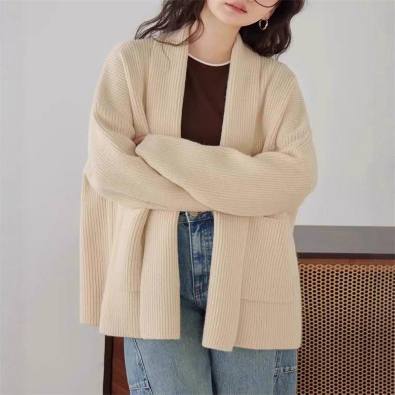 Knitted sweater jacket autumn and winter new loose lazy thickened medium and long knitted cardigan top women