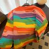 Lazy wind rainbow contrasting color knitted sweater women's autumn and winter new loose casual striped pullover sweater women