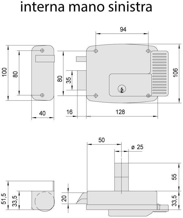 Serrure électrique - Cisa - 11500-20 - 50 mm - Entrée à gauche - Mécanisme à cylindre