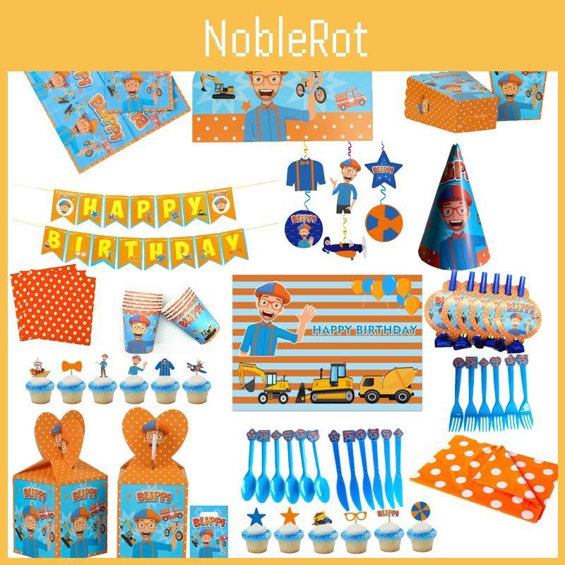 Birthday Blippi Party Supplies Paper Cups Plates Banner Straw Kids Balloon Decor