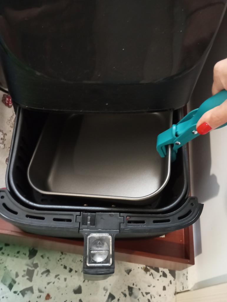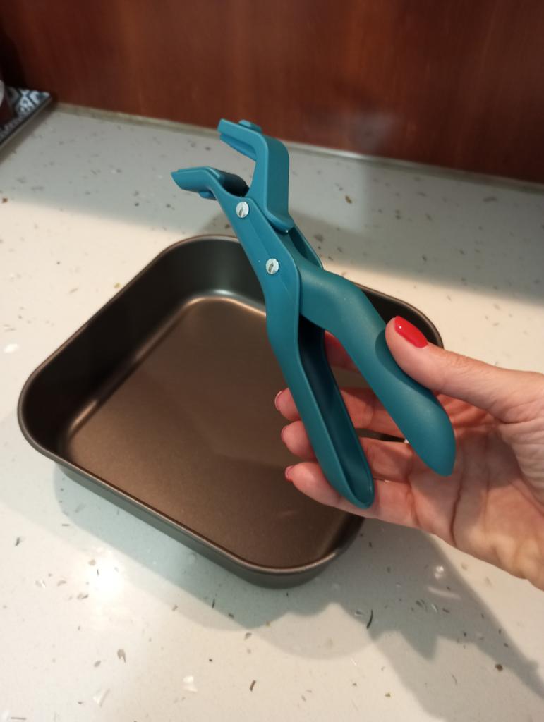 Zange für Töpfe und Pfannen.🌹🌹🌹🌹 Ich habe diese Zange gekauft, weil ich sie wirklich sehr nützlich finde, besonders um Pfannen aus dem Ofen oder der Heißluftfritteuse zu nehmen. . Um ehrlich zu sein, kam mir die Idee mit der Zange vor allem für die Heißluftfritteuse: Tatsächlich habe ich beschlossen, die Einwegbehälter durch richtige Backformen zu ersetzen, aber die Heißluftfritteuse ist sehr eng und es ist schwierig, die Backform mit einem Ofenhandschuh herauszunehmen, ohne sich zu verbrennen. Besser die Zange😋😋 Der Zangengriff ist fest. Alles ist perfekt. Die Zange ist in Italien angekommen, etwa 20 Tage, perfekt verpackt. Ich bin mit meinem Kauf vollkommen zufrieden und empfehle ihn 😍😍😍 Danke Joom🌟🌟🌟🌟🌟