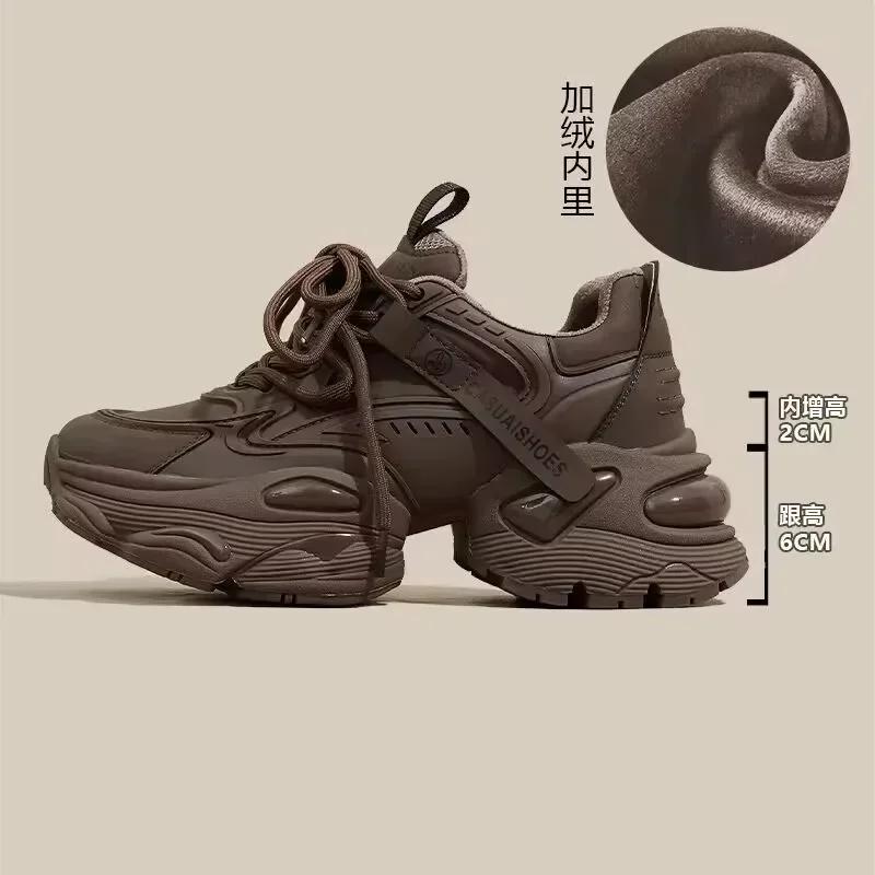 Mode Dicke Sohle Tennis Damen Sneaker Lässig Schnürkeil Dad Schuhe Outdoor Mode Sport Warmhalten Optionales Samtfutter Sneaker