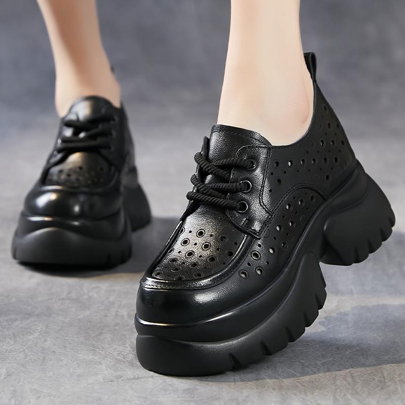 Mode GKTINOO Handgefertigt Retro 2025 Neu Frühling Sommer Damen Schuhe Dicke Sohle Echtes Leder Sandalen Ausgehöhlte Plateau Keilabsatz Sneaker