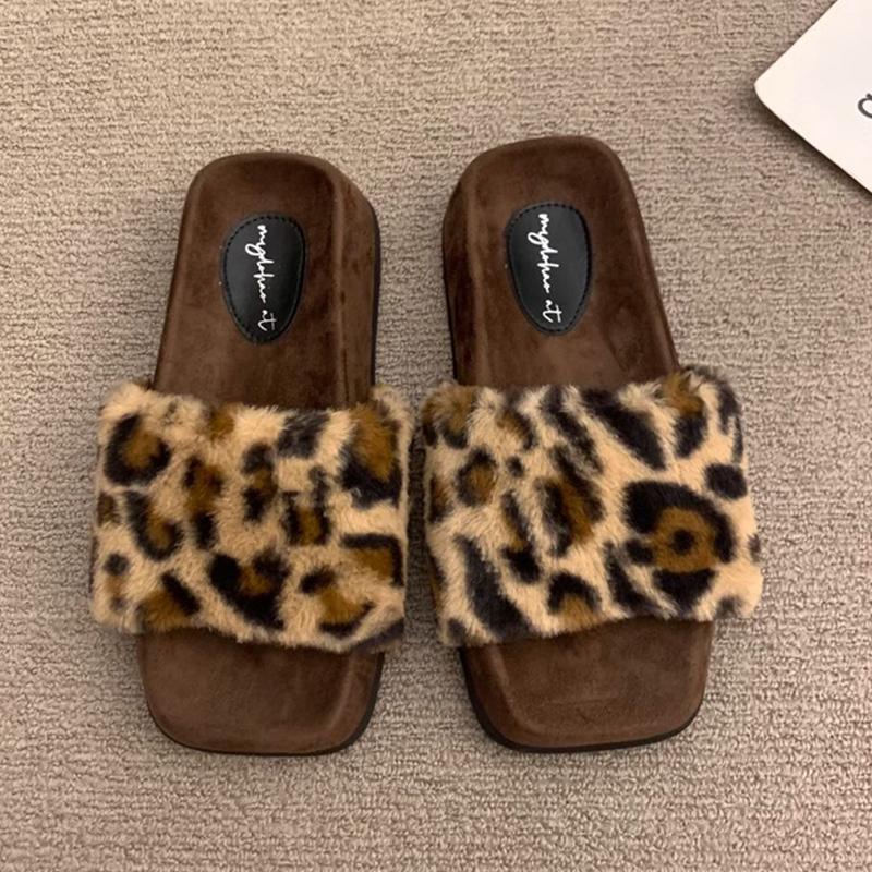 Mode Pelz Leopard Damen Hausschuhe Flats Mode Baumwollschuhe Designer Winter Gemütliche Stiefel Frau 2025 Lässig Kleid Zapatillas De Mujer