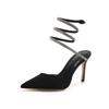 Mode Luxus Strass Schlangenwickel Satin Damen Pumps Sexy Knöchelriemen Spitzzehen Stiletto Hohe Absätze Gesellschaftsdame Bankettschuhe