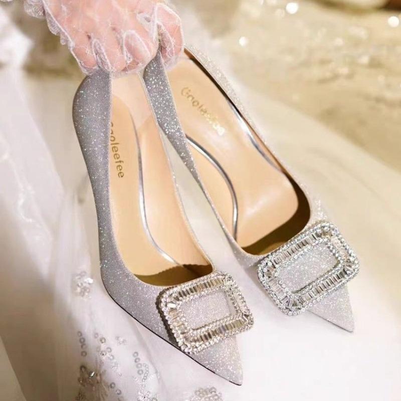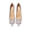 Mode Frühling Neue Dünne Absatzschuhe Damenmode Spitzkopf Flacher Ausschnitt Metall Quadratische Schnalle Slipper High Heels