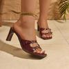 Mode Hohl Quadratabsatz Pantoletten Neu Sommer Quadratkopf Offene Zehen Kristall Metall Schnalle Rutschfest Verschleißfest Hohe Absätze