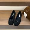 Mode Damen Flats Winter Neu Quadratische Zehenpartie Flacher Ausschnitt Schmetterlingsknoten Weiche Sohle Rutschfest Abriebfest Niedrig geschnittene Schuhe