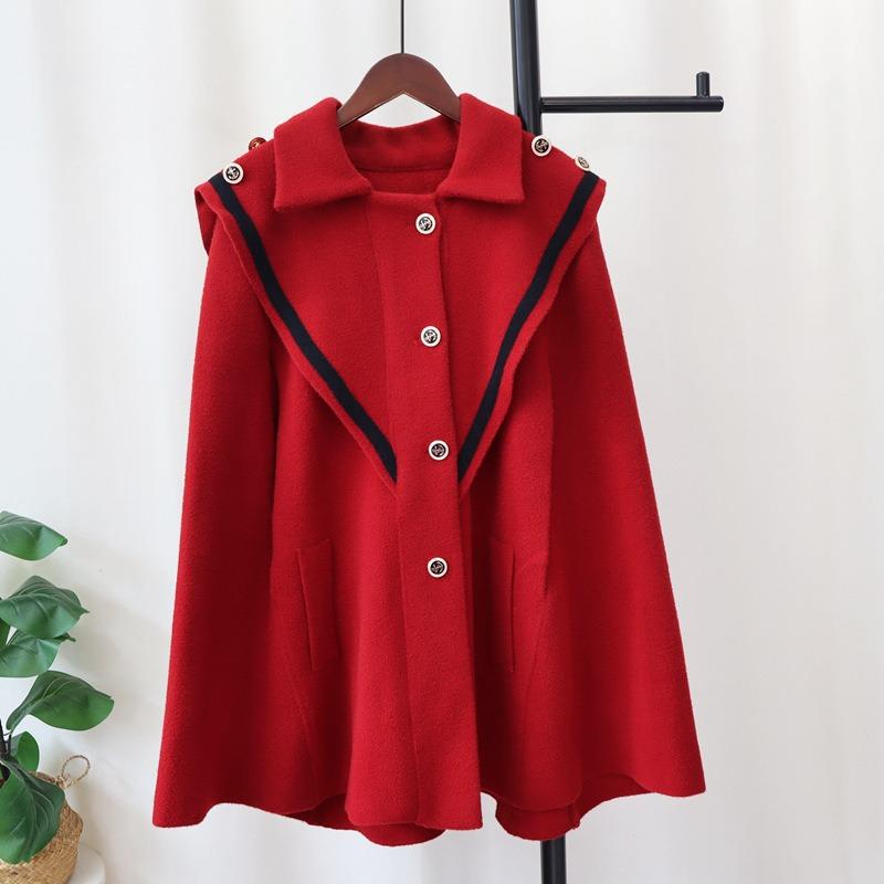 Navy collar knitted double-sided woolen cloak coat women's autumn and winter new temperament high-end sweater jacket shawl