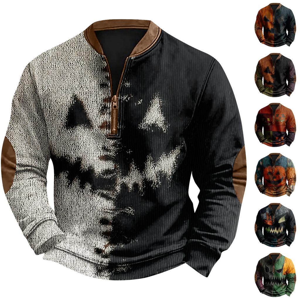 Herren Casual Fashion Weihnachtsdruck Kapuzenpullover Breiter Herren Loose Button Stand Collar Kapuzenpullover