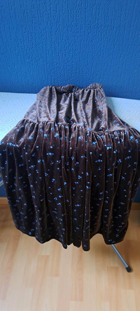 Koreanische Mode Herbst Winter Damen Samtrock Hohe Taille Blumendruck Schwarz Braun Midirock Vintage Elegant Feminin Rüschenrock