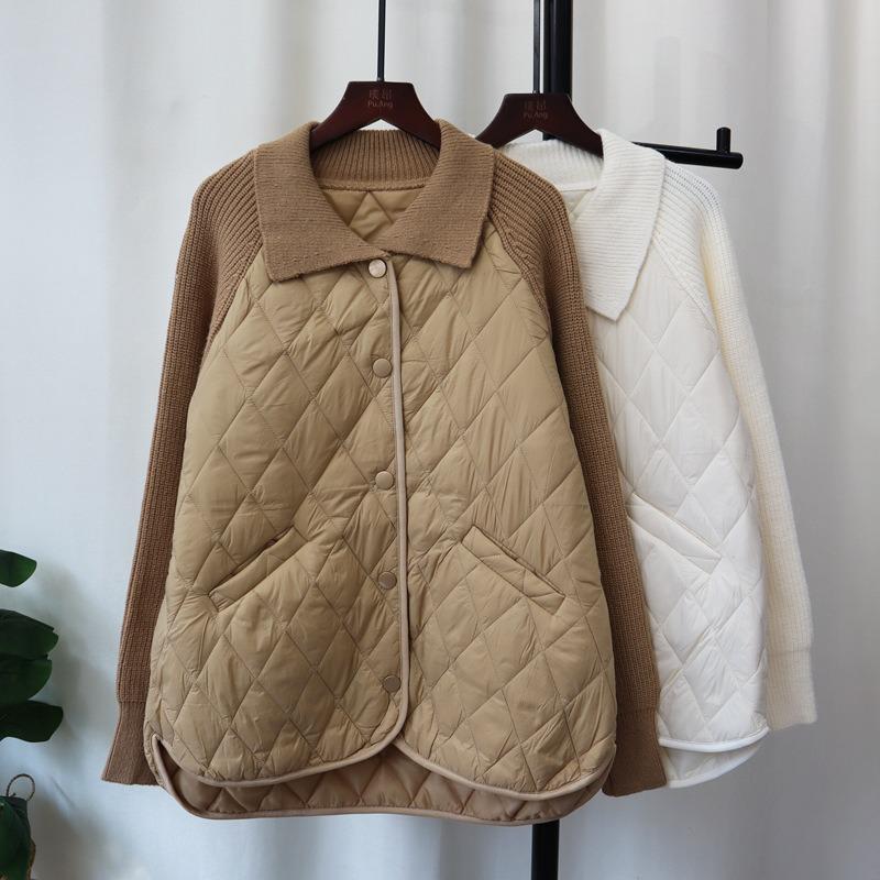 Lapel splicing cotton sweater jacket autumn and winter new casual loose and versatile design knitted cardigan women