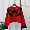 Autumn and winter new small short knitted double-sided cardigan design sense niche contrasting color sweater jacket women