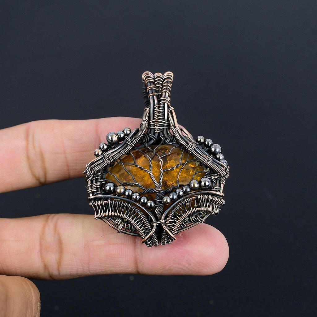 Bernsteinanhänger aus dem Baltikum, mit 999er Kupferdraht umwickeltes Edelsteinschmuckstück, handgefertigter Anhänger für den Muttertag