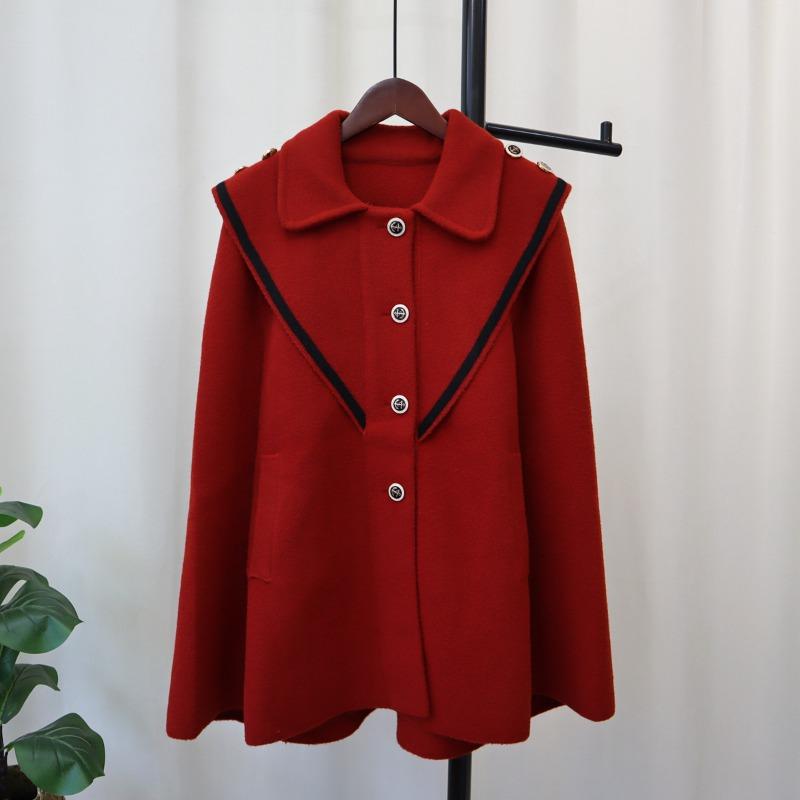 Autumn and winter new temperament design sense knitted double-sided woolen cloak coat women's contrasting color loose sweater jacket