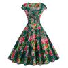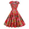 Women's Vintage Summer V-Neck Short Sleeve Big Safflower Printed Pendulum Dress
