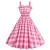 Sexy suspender chest wrap plaid print lace A-word dress