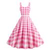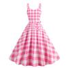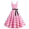 Barbie powder new summer retro sexy suspender plaid print pendulum skirt belt
