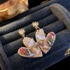 Modische lange Quasten-Strass-Hängeohrringe für Damen Schwarzes Herz Kristall Hängeohrring Statement Zirkon