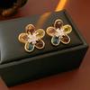 Farbige Zirkon Glas Blumen Ohrringe für Damen Leichter Luxus Palaststil Vielseitige Stecker High-End Mode Zirkon Geschenk