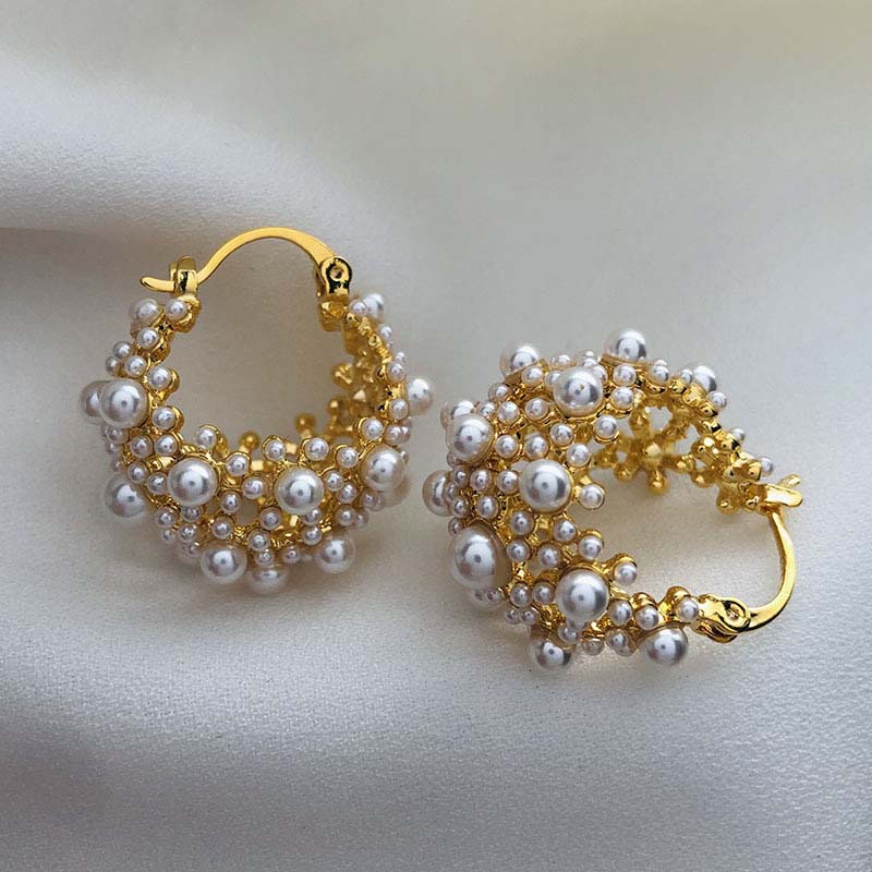 Vintage Goldfarbene Unregelmäßige Perlenohrringe Für Damen Elegante Metall Hohle Blumenkorb Persönlichkeits-Ohrringe Hochzeit Zirkon